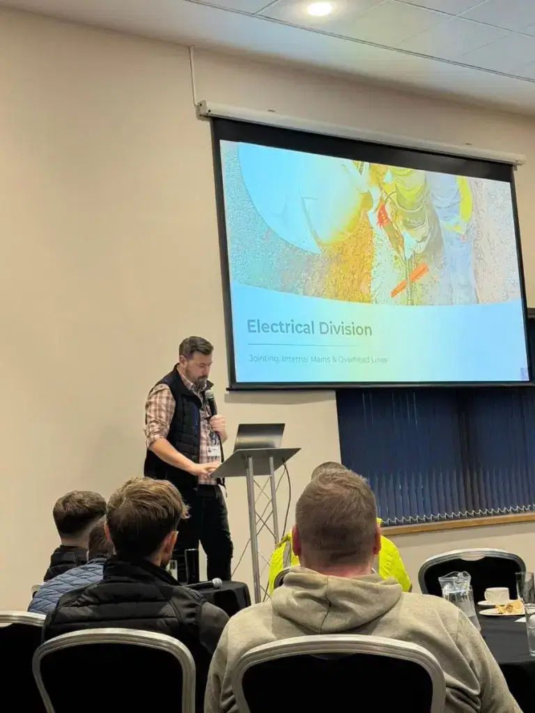 Luke Holden, our Electrical Operations Manager, covered topics from auditing, planning, operational organisation, future development and apprenticeships. Our jointing apprenticeships have been a real success in 2025; 5 new jointers mates made & on with service jointing training now. We’re keen to go again in spring 2026, with our next cohort.